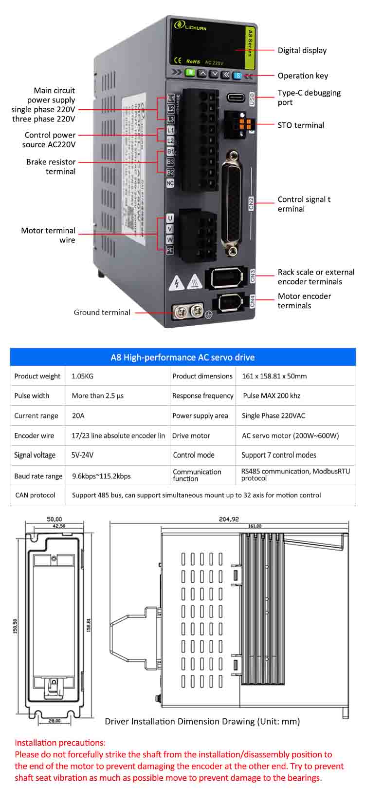 Produktnavn:Lichuan A8 Høy nøyaktighet STO ABZ AC Servo Motor Drivers Kit